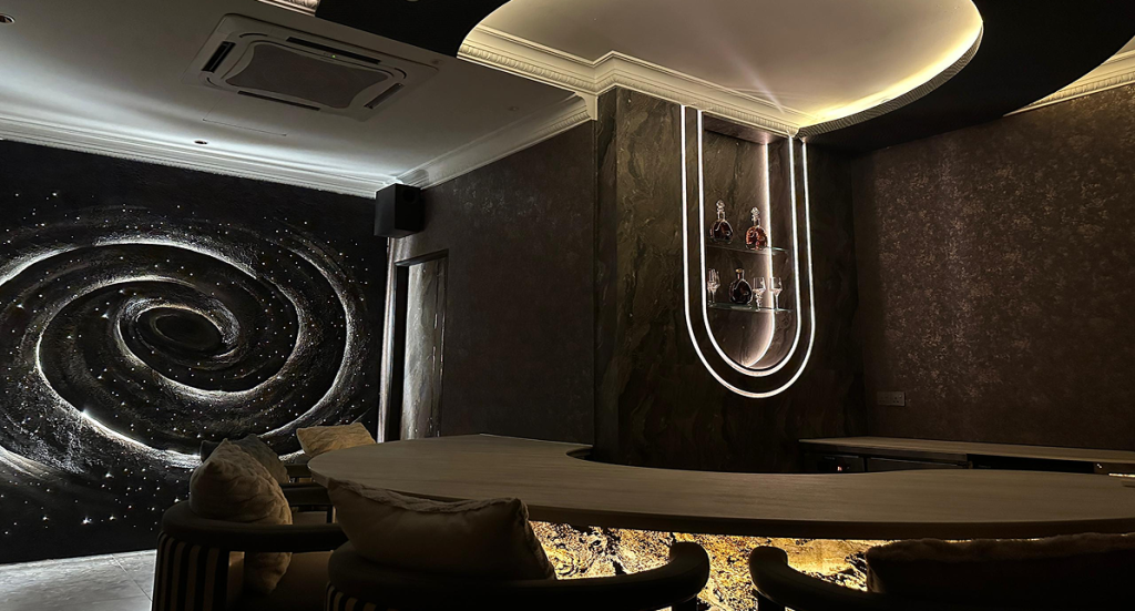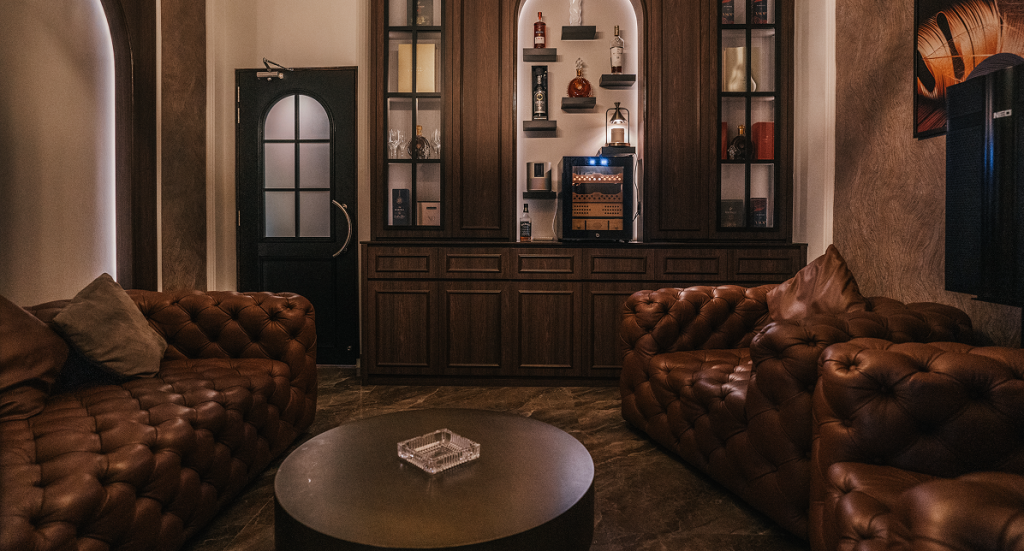 Cigar Room — A sophisticated retreat where elegance meets intimacy. Enjoy an evening of quiet indulgence in this private lounge, perfectly suited for after-dinner relaxation, fine cigars, and premium drinks.